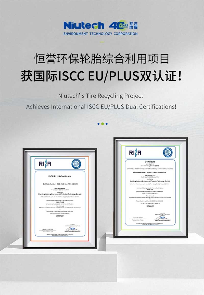 Recently, Niutech’s tire recycling project, utilizing its next-generation intelligent continuous production line, successfully obtained both ISCC EU and ISCC PLUS certifications. This milestone confirms that the quality of the pyrolysis products from Niutech’s production line meets the stringent requirements for entry into the global high-end green renewable energy market. Against the backdrop of accelerating EU Carbon Border Adjustment Mechanism (CBAM) implementation, Niutech’s advanced continuous pyrolysis technology, equipment, and integrated operational solutions have emerged as a preferred choice. This achievement sets a successful precedent for circular economy enterprises in enhancing international competitiveness, expanding high value-added markets, and achieving global green trade and carbon emission trading.